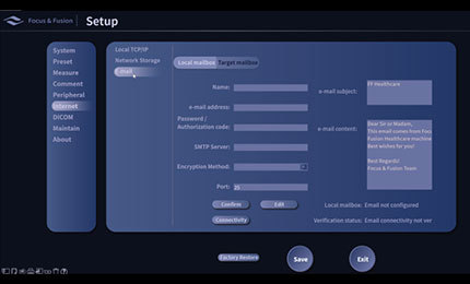 A função de atalho é exibida no canto inferior esquerdo para ajudar o médico a localizar rapidamente a função necessária.